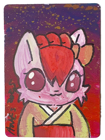 Custom Babanuki card painted with vibrant acrylic gouache and finished with Posca detailing.